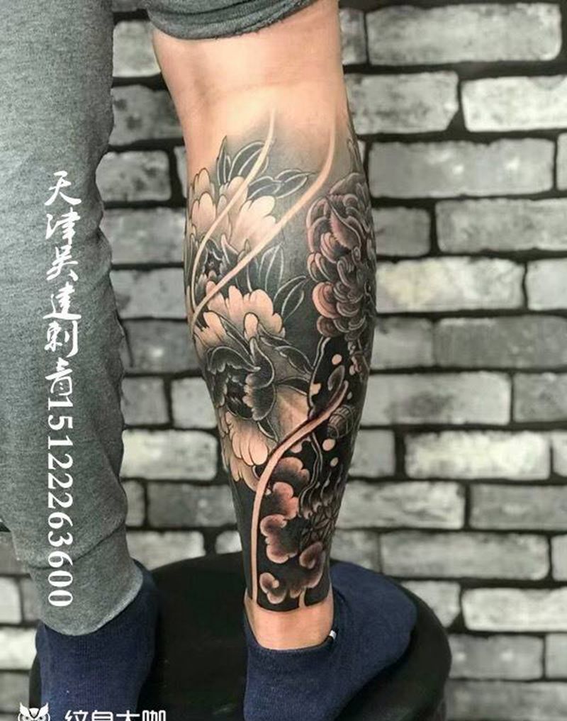 • T网红王老大花腿龙纹身图片_腿部新传统纹身图案