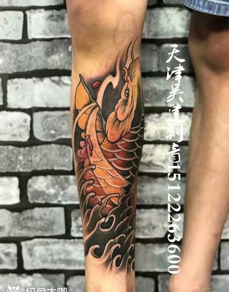 • T网红王老大花腿龙纹身图片_腿部新传统纹身图案