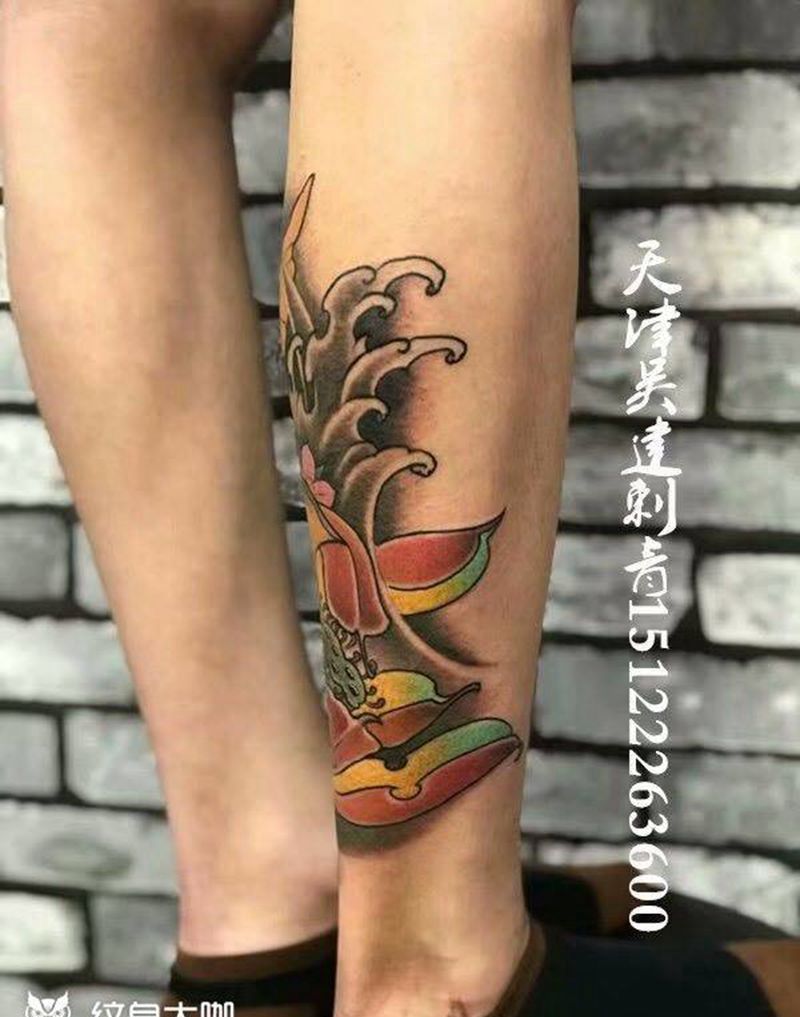 • T网红王老大花腿龙纹身图片_腿部新传统纹身图案