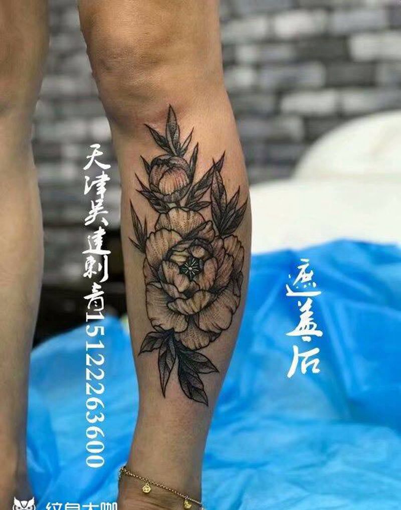 • T网红王老大花腿龙纹身图片_腿部新传统纹身图案