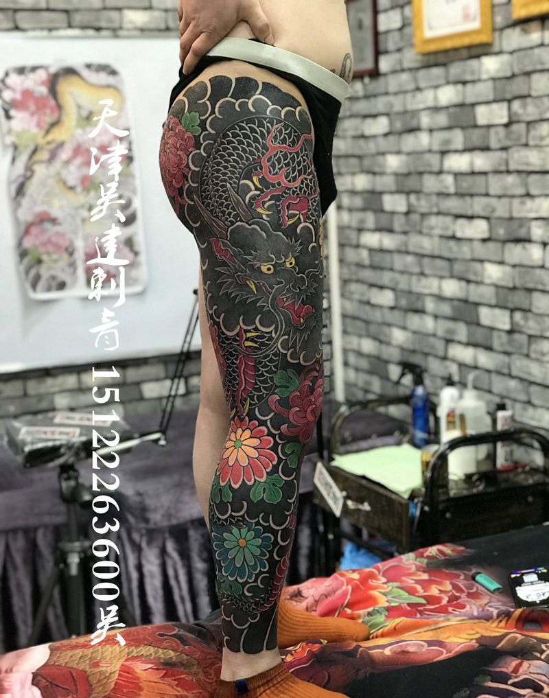 • T网红王老大花腿龙纹身图片_腿部新传统纹身图案