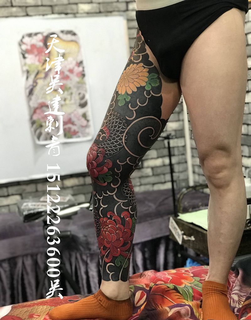 • T网红王老大花腿龙纹身图片_腿部新传统纹身图案