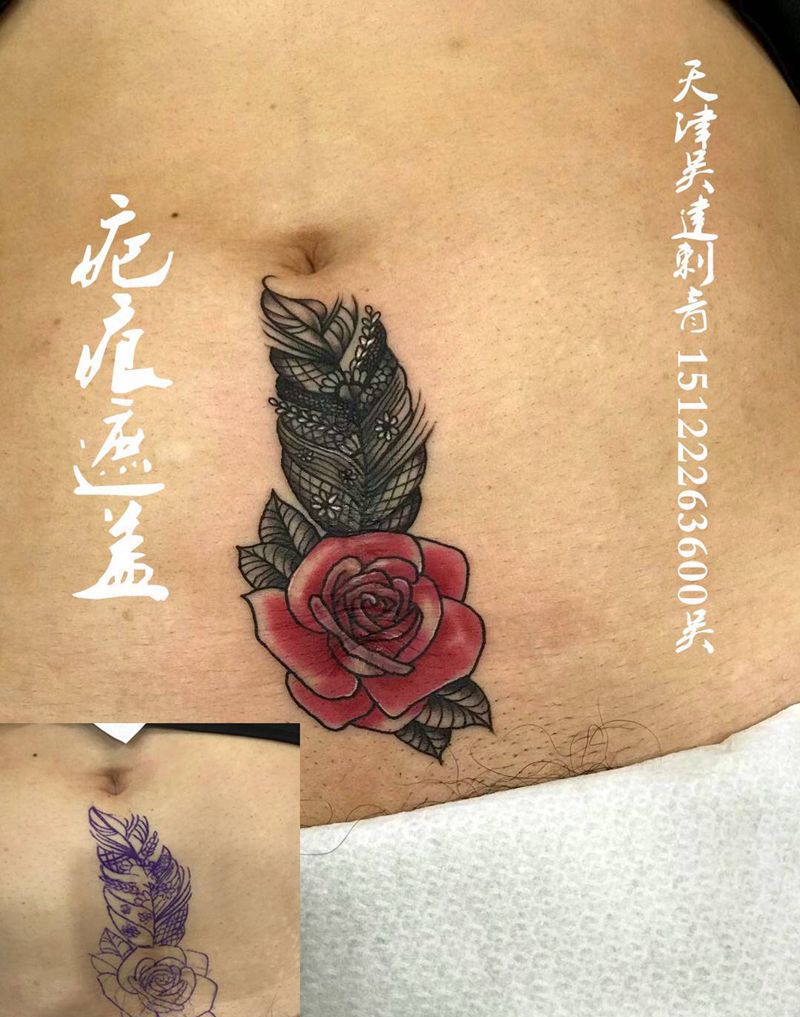 • T关于私处得爱!纹身图片_成品腹部清新字符图腾纹身图案