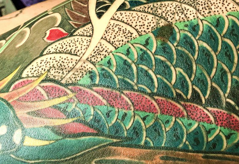 • T网红王老大花腿龙纹身图片_腿部新传统纹身图案
