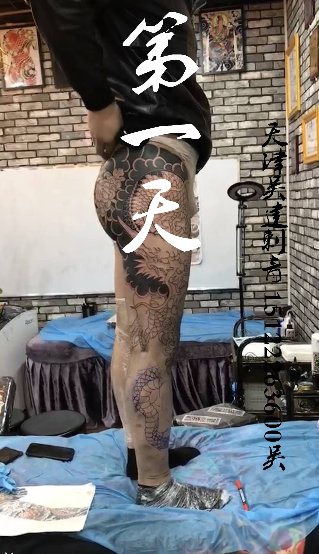 • T网红王老大花腿龙纹身图片_腿部新传统纹身图案