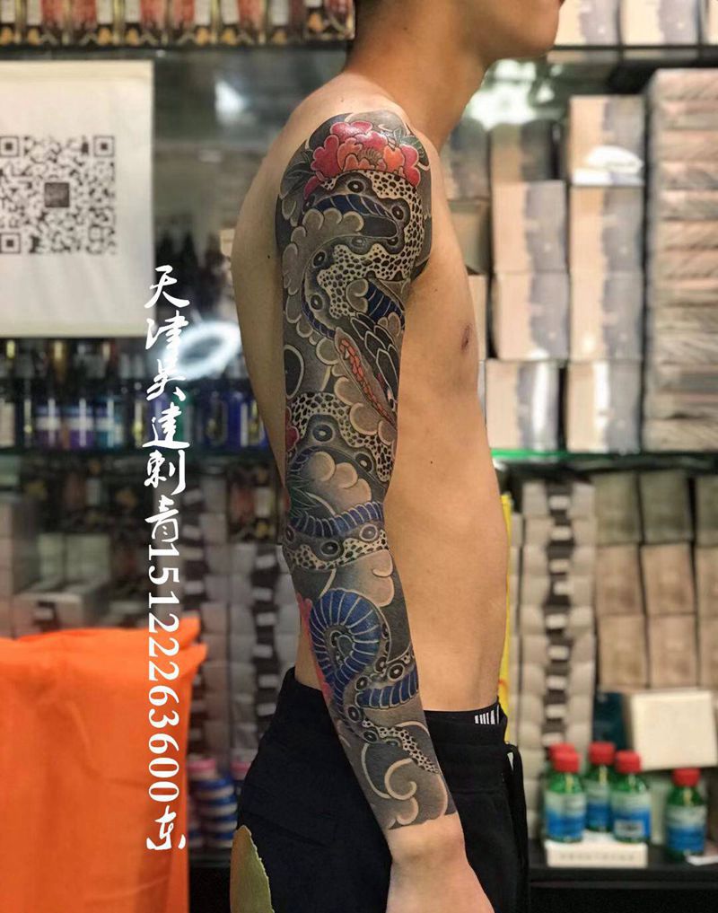 当前位置: 首页 >天津市纹身店-天津吴建刺青纹身图案>蟒戏牡丹纹身图片_手臂老传统纹身图案