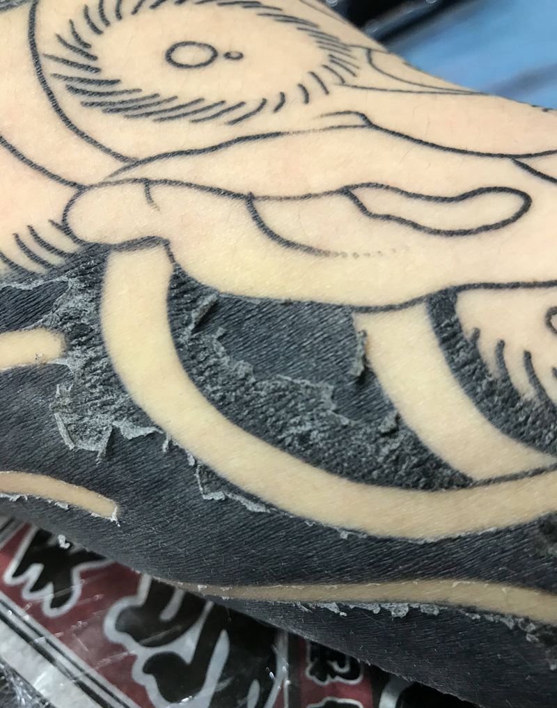• T网红王老大花腿龙纹身图片_腿部新传统纹身图案