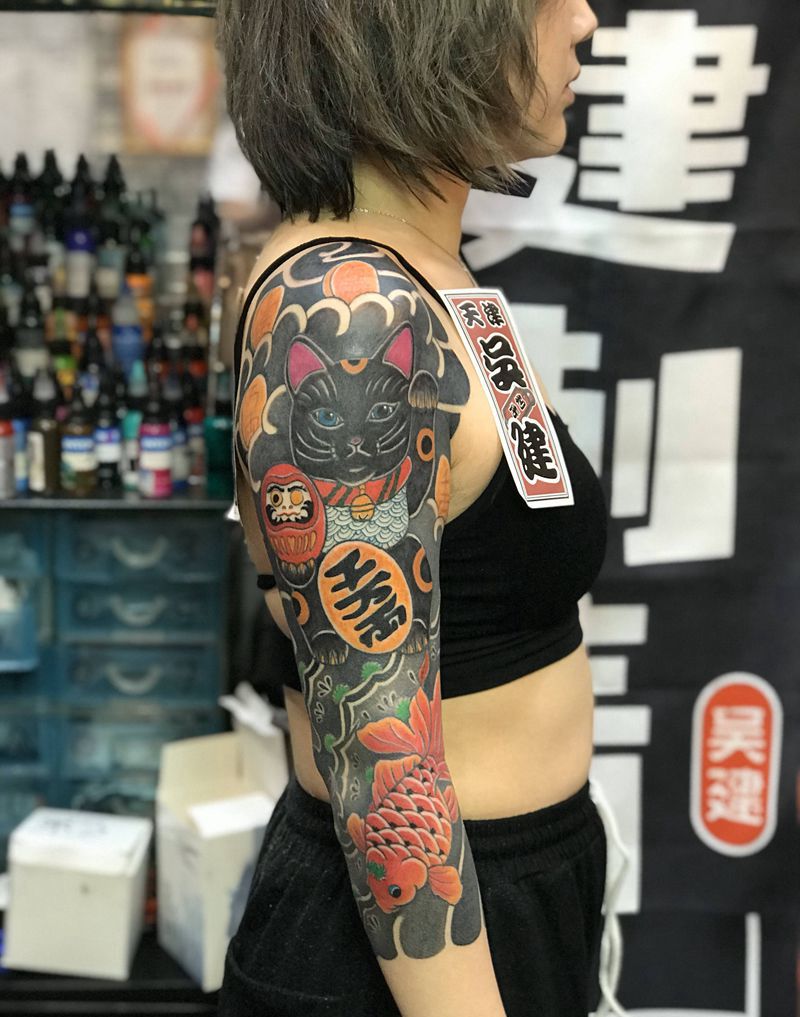 当前位置: 首页 >天津市纹身店-天津吴建刺青纹身图案>招财猫纹身图片_手臂新传统纹身图案