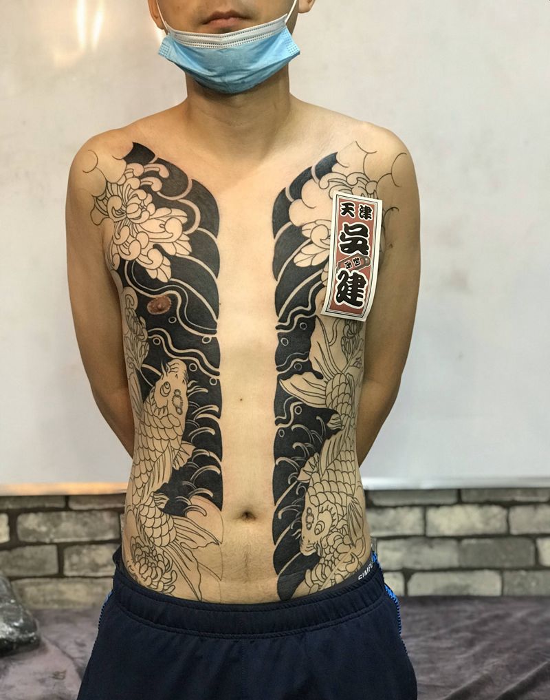 当前位置: 首页 >天津市纹身店-天津吴建刺青纹身图案>连年有余、开衫纹身图片_胸部老传统纹身图案