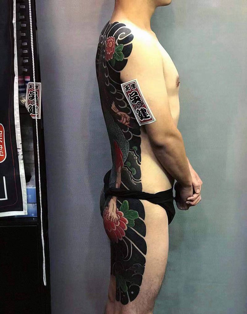 • T云龙九郎纹身图片_背部老传统云龙九郎纹身图案
