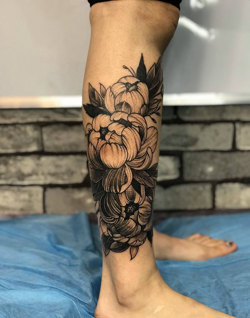• T网红王老大花腿龙纹身图片_腿部新传统纹身图案