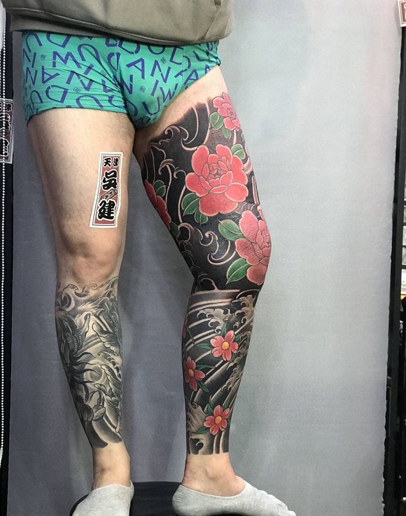 当前位置: 首页 >天津市纹身店-天津吴建刺青纹身图案>包小腿接花腿纹身图片_新传统纹身图案