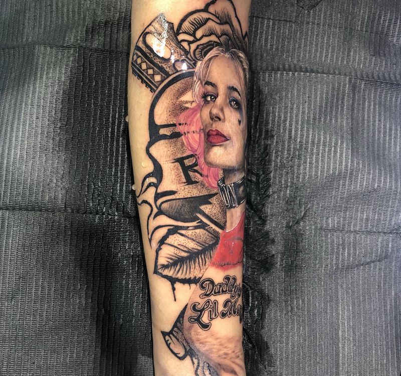 当前位置: 首页 >天津市纹身店-智纲刺青纹身图案>小丑女纹身图片_手臂欧美写实纹身图案