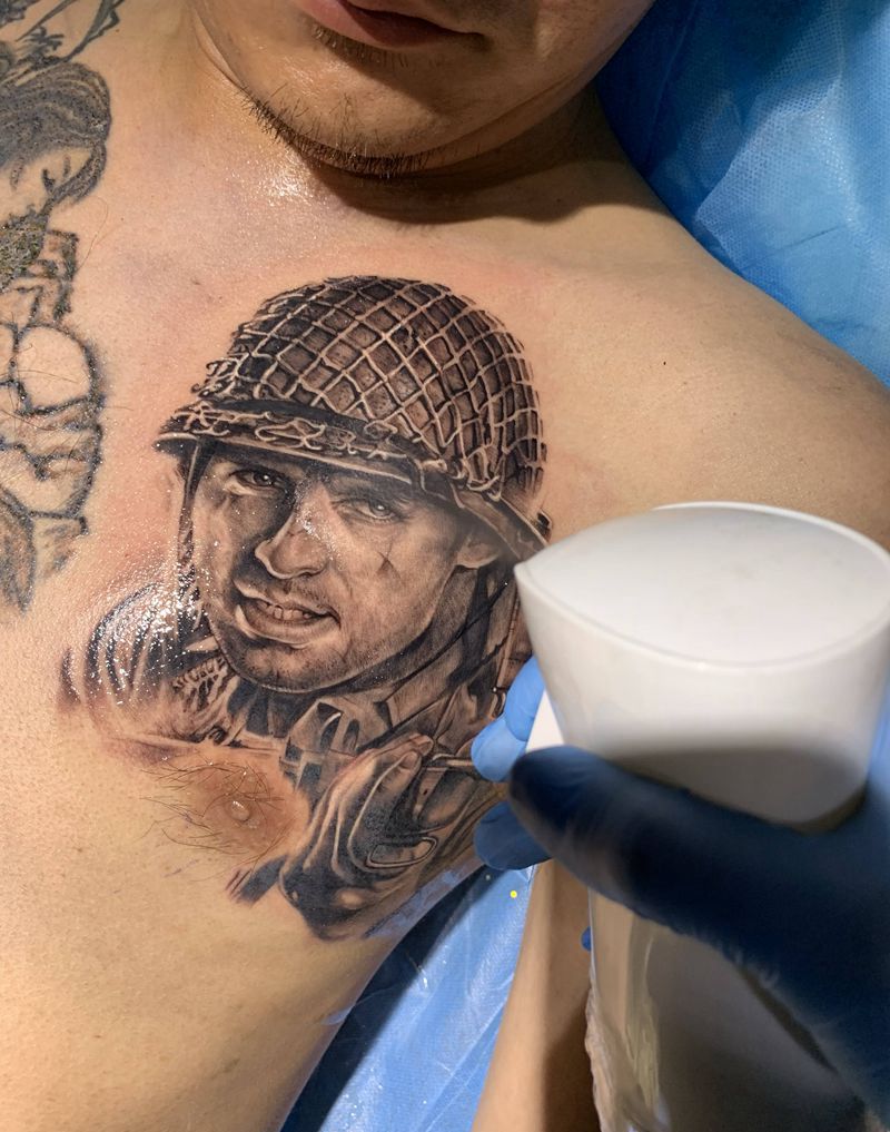 当前位置: 首页 >天津市纹身店-智纲刺青纹身图案>大兵纹身图片_胸部欧美写实纹身图案