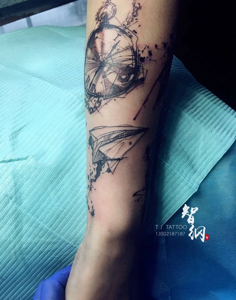 当前位置: 首页 >天津市纹身店-智纲刺青纹身图案>拼接式花臂纹身图片_成品手臂清新几何水彩静物纹身图案