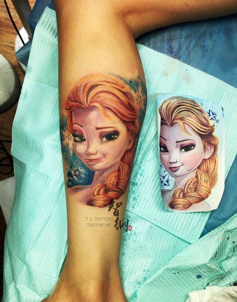 当前位置: 首页 >天津市纹身店-智纲刺青纹身图案>冰雪奇缘纹身图片_成品脚部水彩人物纹身图案