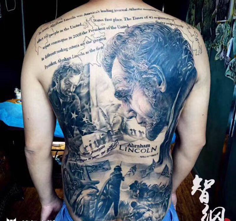 当前位置: 首页 >天津市纹身店-智纲刺青纹身图案>林肯纹身图片_背部欧美写实纹身图案