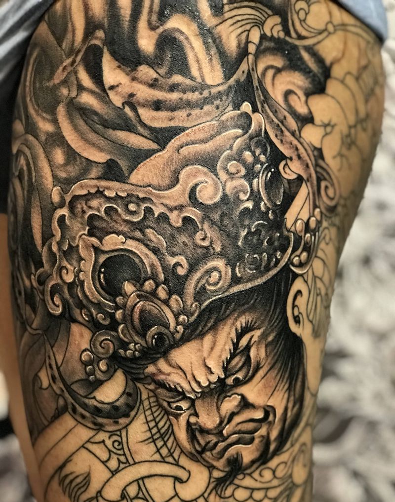 四大天王,魔礼青纹身图片_腿部新传统纹身图案