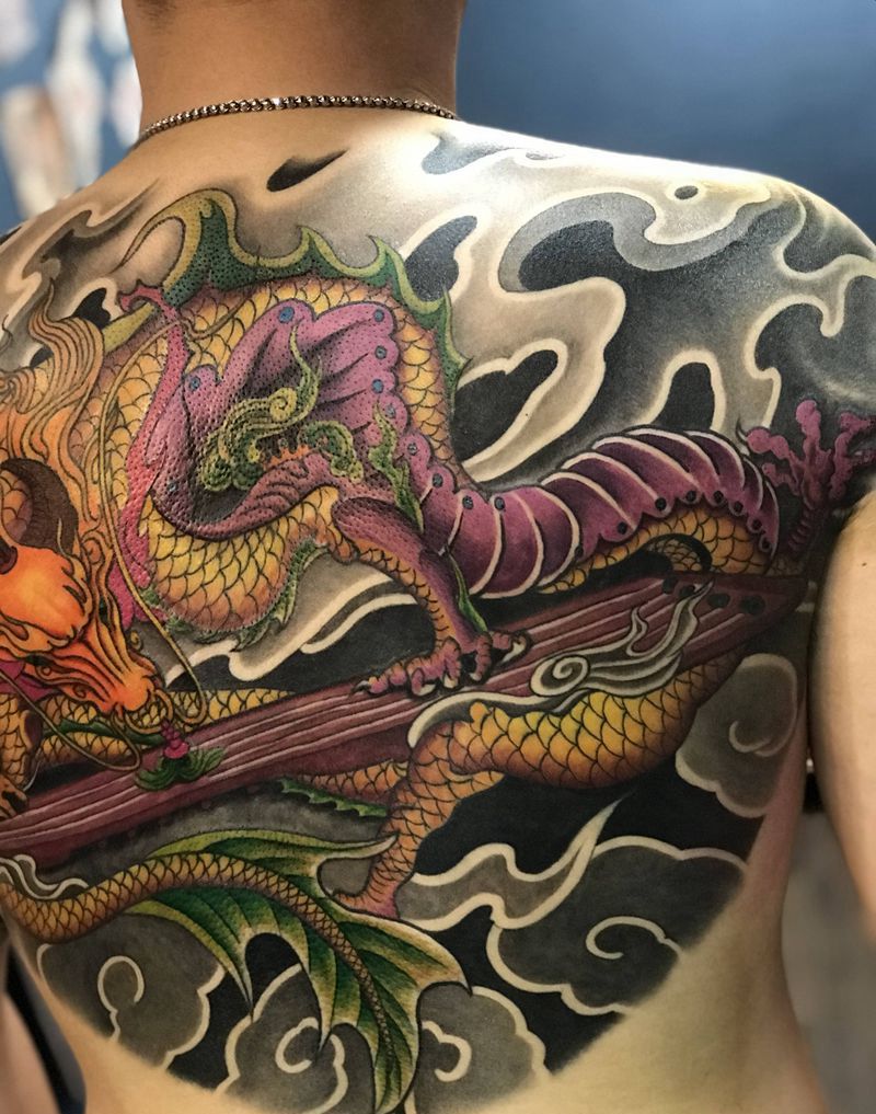 后背囚牛纹身图片_背部新传统老传统纹身图案