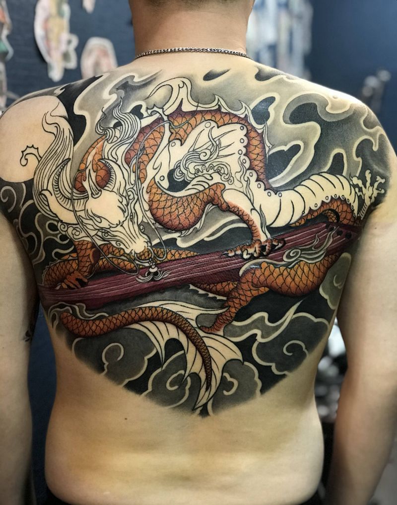 • T云龙九郎纹身图片_背部老传统云龙九郎纹身图案