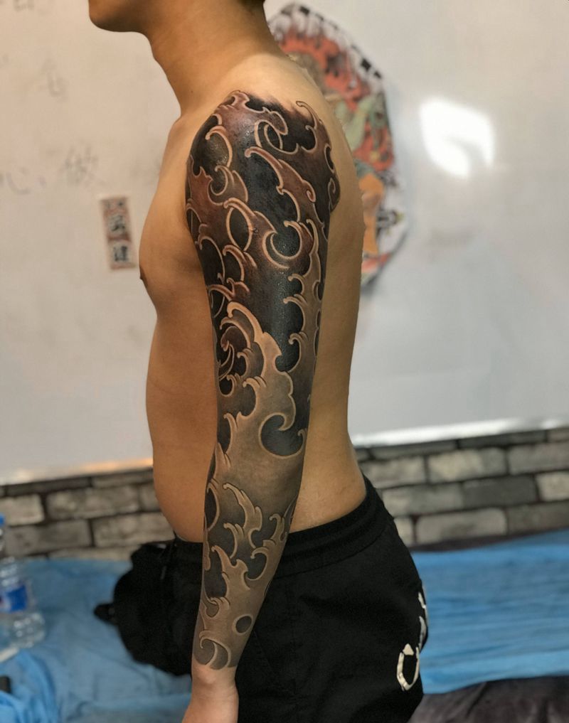 浪臂花臂纹身图片_手臂新传统老传统纹身图案