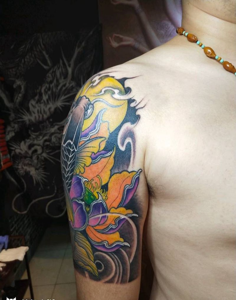 大臂锦鲤纹身图片_手臂传统动物成品纹身图案