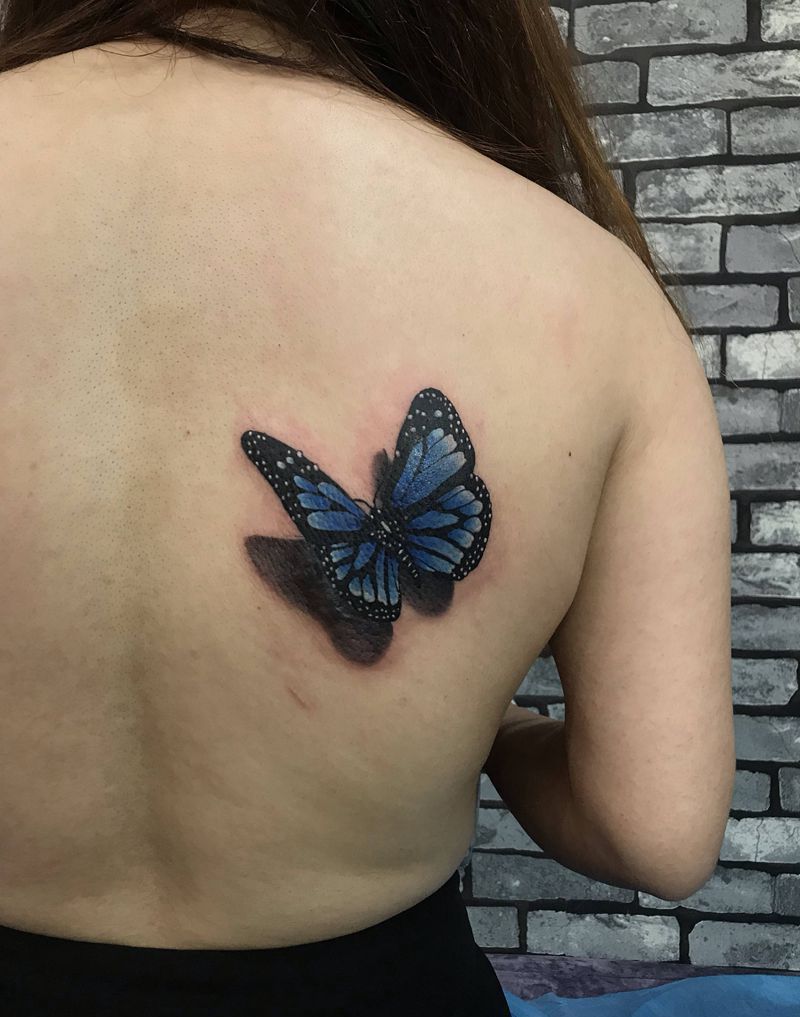 蝴蝶纹身纹身图片_背部欧美写实纹身图案