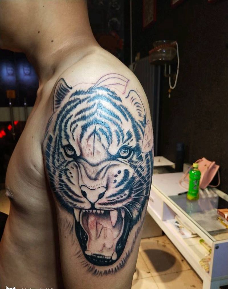 当前位置: 首页 >天津市纹身店-天津东刺青纹身图案>大臂老虎纹身图片_