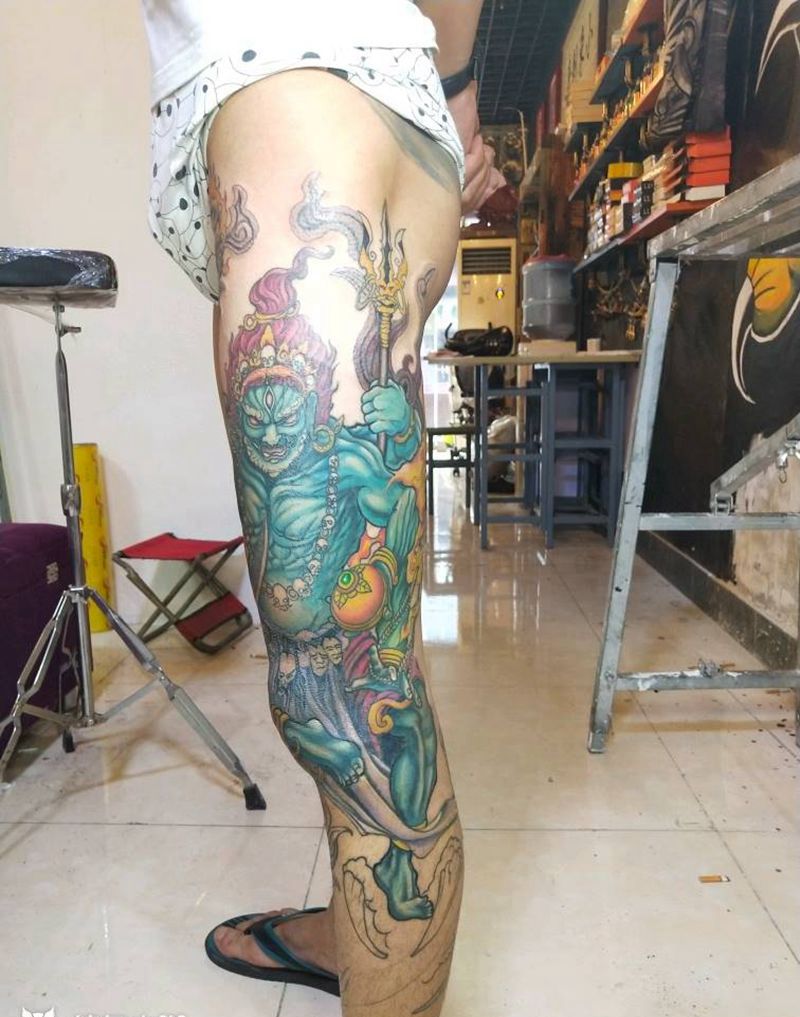• T网红王老大花腿龙纹身图片_腿部新传统纹身图案