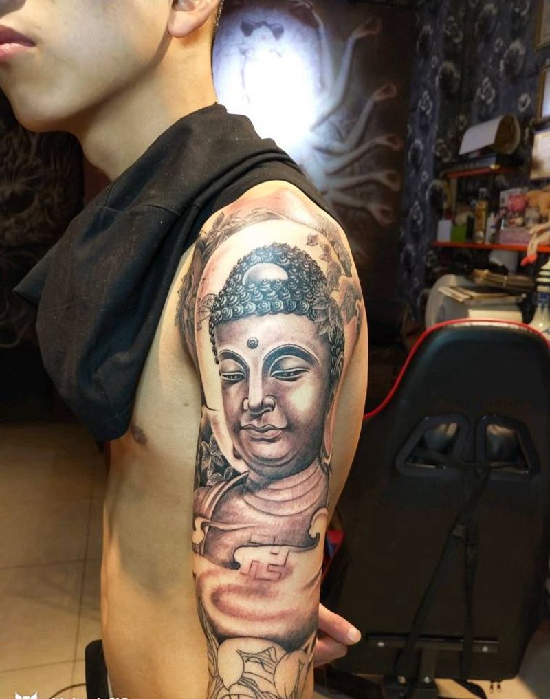 当前位置: 首页 >天津市纹身店-天津东刺青纹身图案>花臂纹身图片_手臂传统人物成品纹身图案