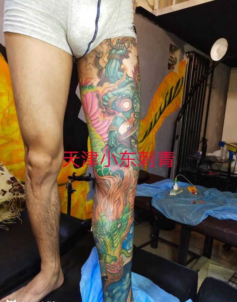 • T网红王老大花腿龙纹身图片_腿部新传统纹身图案