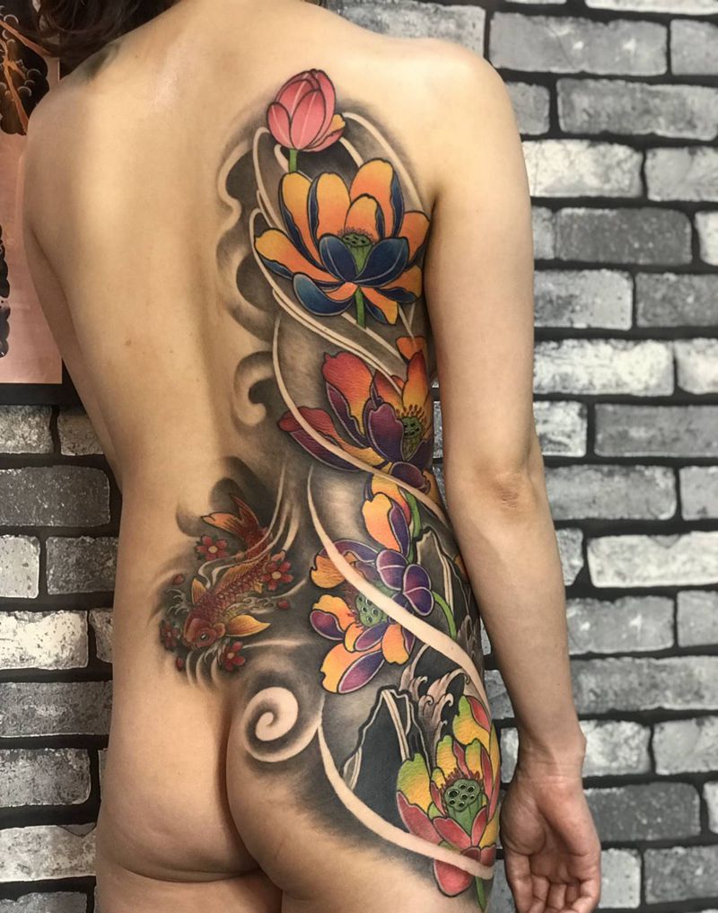 当前位置: 首页 >天津市纹身店-天津东刺青纹身图案>侧腰荷花纹身图片_腰部背部新传统纹身图案