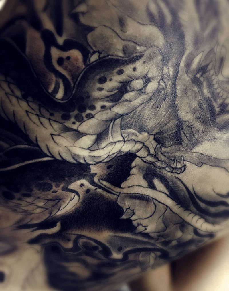 • 黑灰满背纹身图案