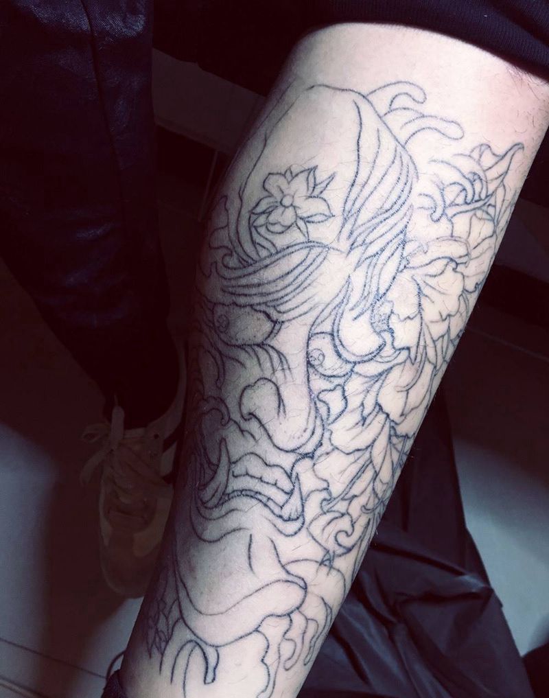 • T网红王老大花腿龙纹身图片_腿部新传统纹身图案