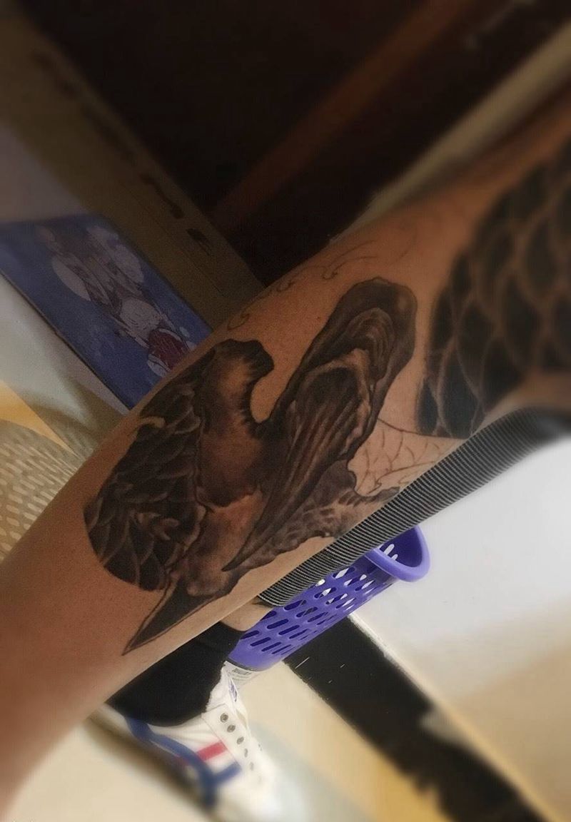 • T网红王老大花腿龙纹身图片_腿部新传统纹身图案