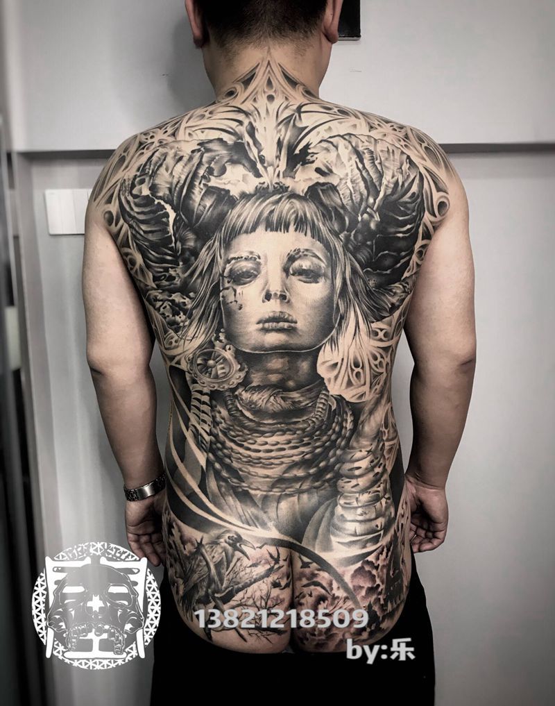 当前位置: 首页 >天津市纹身店-天津闺绣刺青纹身图案>黑夜白羊纹身图片_背部肩部欧美写实满背欧美星座纹身图案