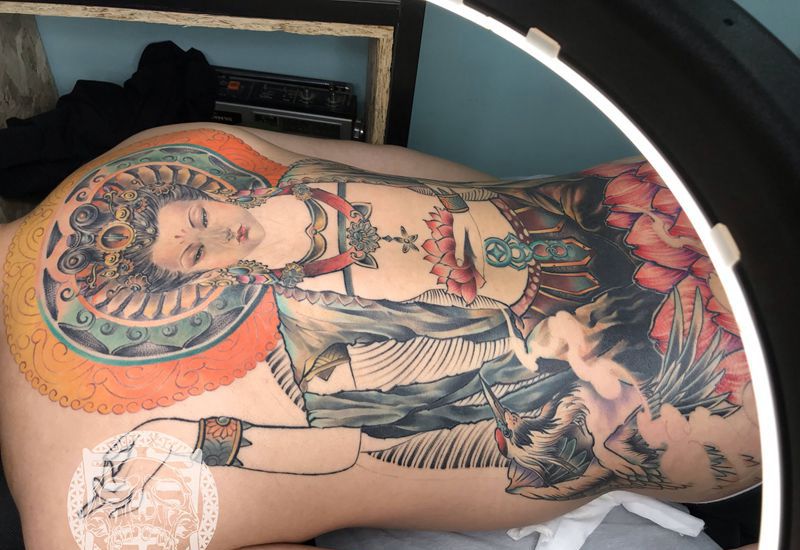 当前位置: 首页 >天津市纹身店-天津闺绣刺青纹身图案>敦煌飞天纹身图片_肩部背部新传统水彩彩色纹身满背纹身佛像纹身纹身图案