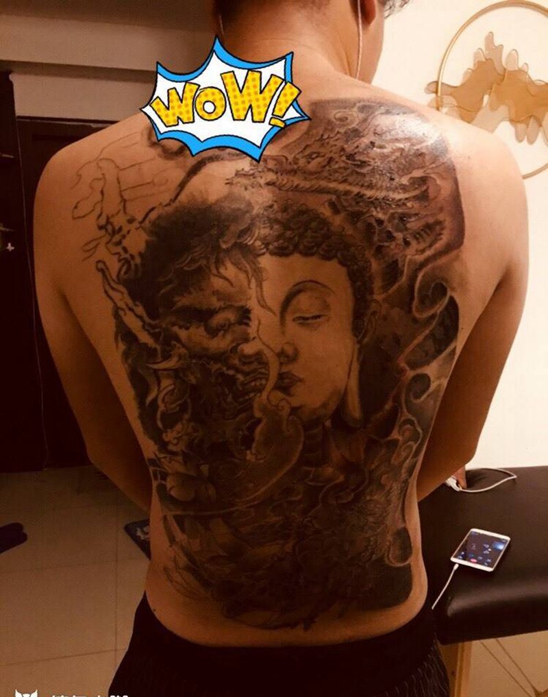 黑灰满背纹身图案