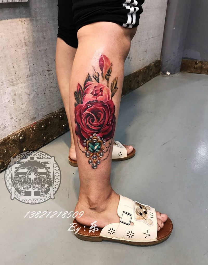 当前位置: 首页 >天津市纹身店-天津闺绣刺青纹身图案>写实花朵纹身图片_成品腿部欧美写实植物静物纹身图案