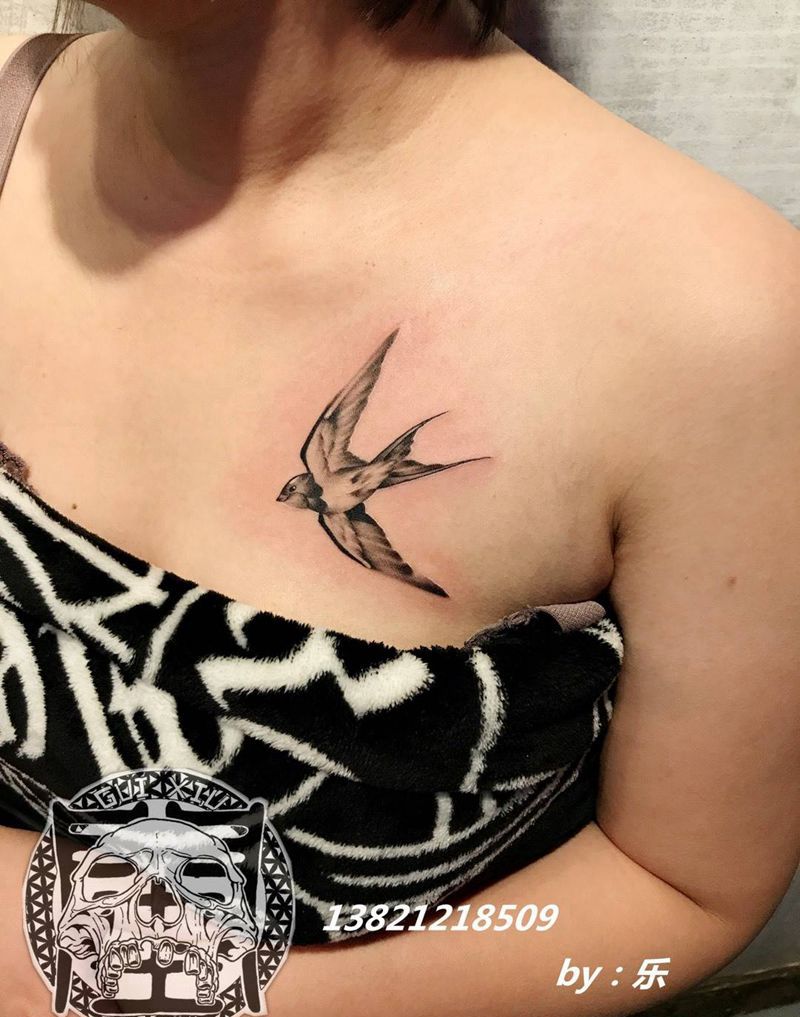燕子纹身图片_成品胸部肩部欧美写实清新动物原创纹身图案