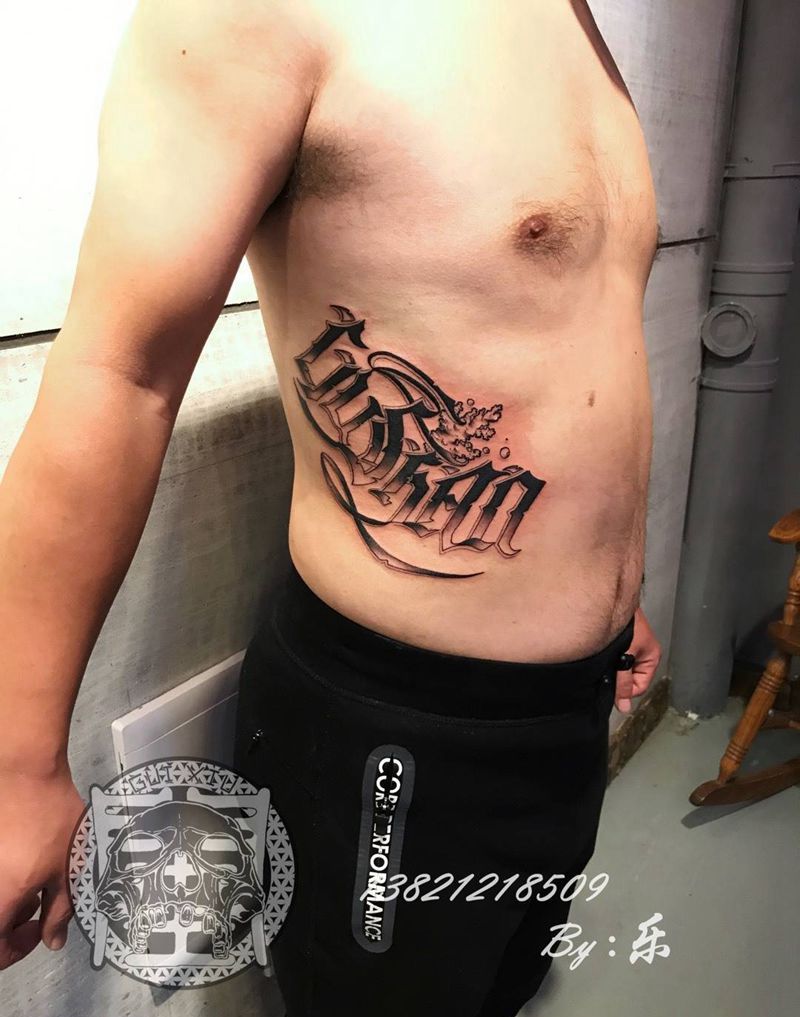 花体英文。纹身图片_成品腰部腹部欧美几何字符原创清新纹身图案
