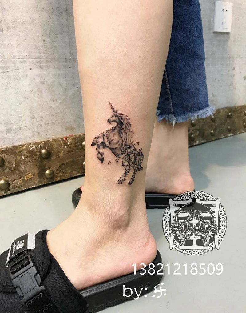 独角兽纹身图片_成品腿部脚部欧美清新几何写实动物纹身图案