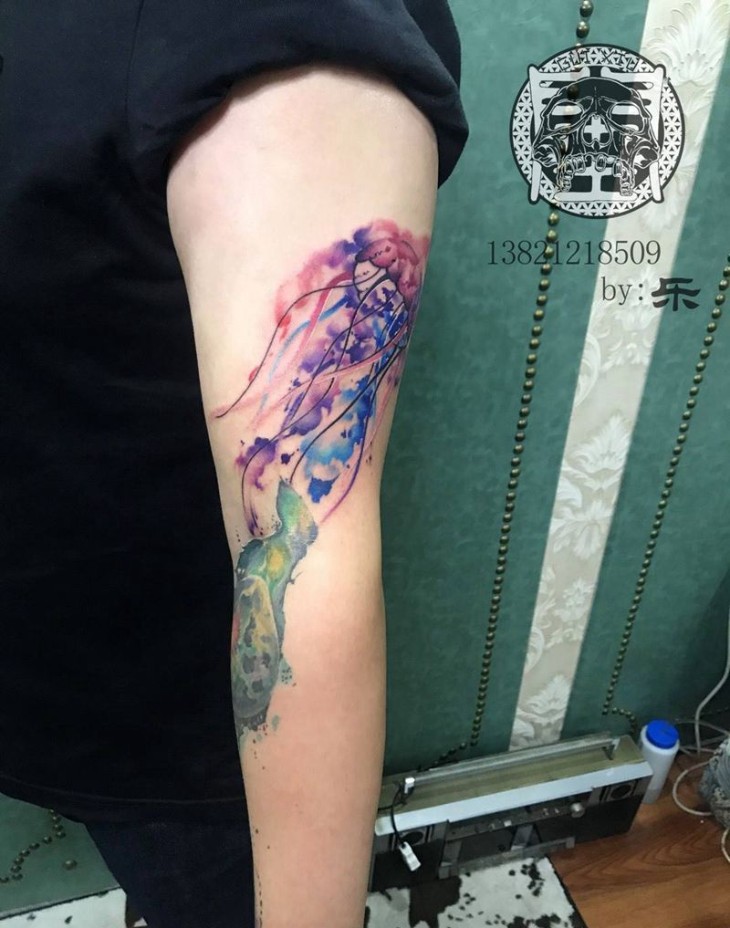 当前位置: 首页 >天津市纹身店-天津闺绣刺青纹身图案>小水母。纹身图片_成品手臂欧美清新写实动物原创纹身图案