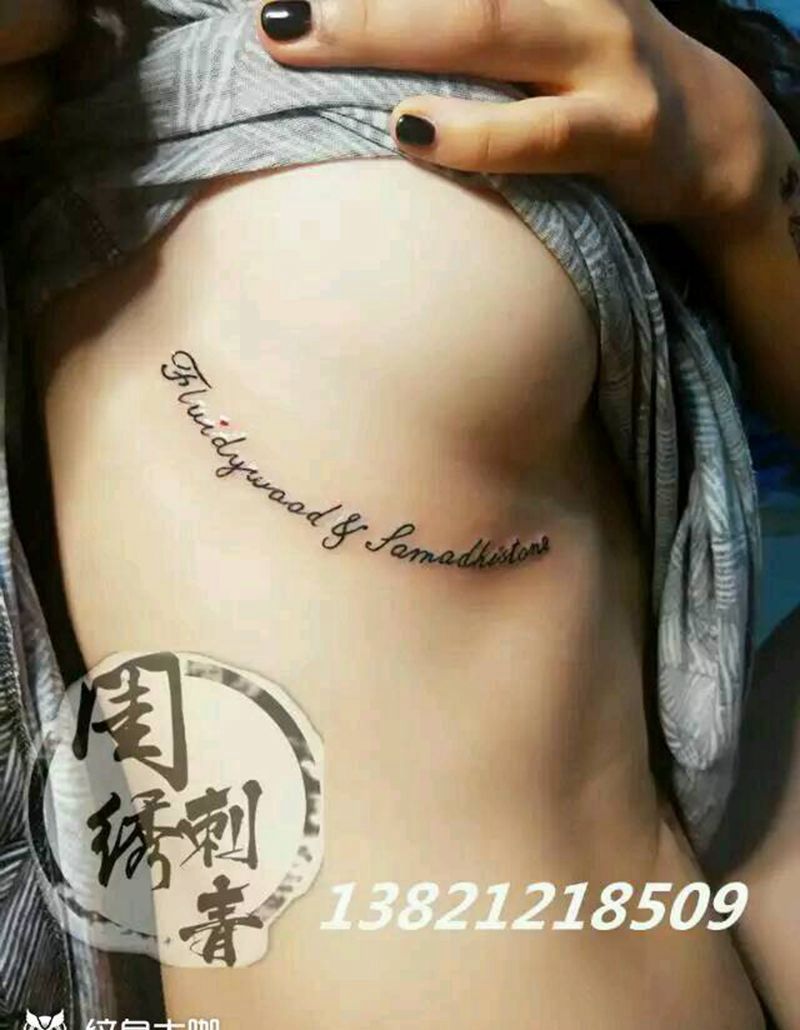 当前位置: 首页 >天津市纹身店-天津闺绣刺青纹身图案>胸下英文纹身图片_胸部腹部传统清新字符成品纹身图案