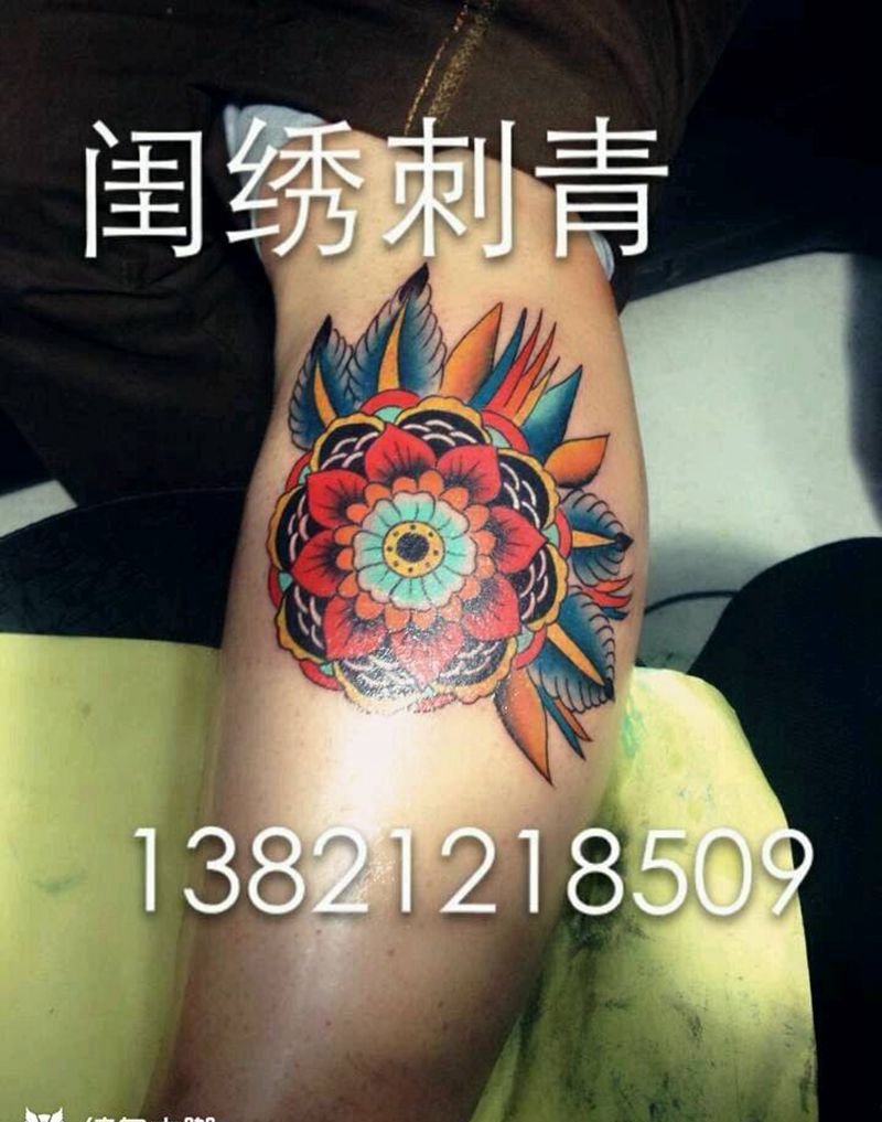 彩色小图纹身图片_腿部欧美静物成品纹身图案