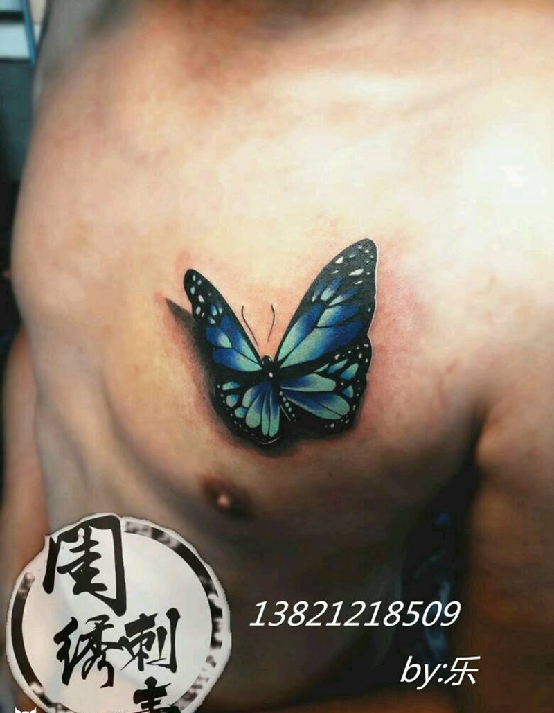 3D蝴蝶纹身图片_胸部欧美传统清新写实动物成品纹身图案