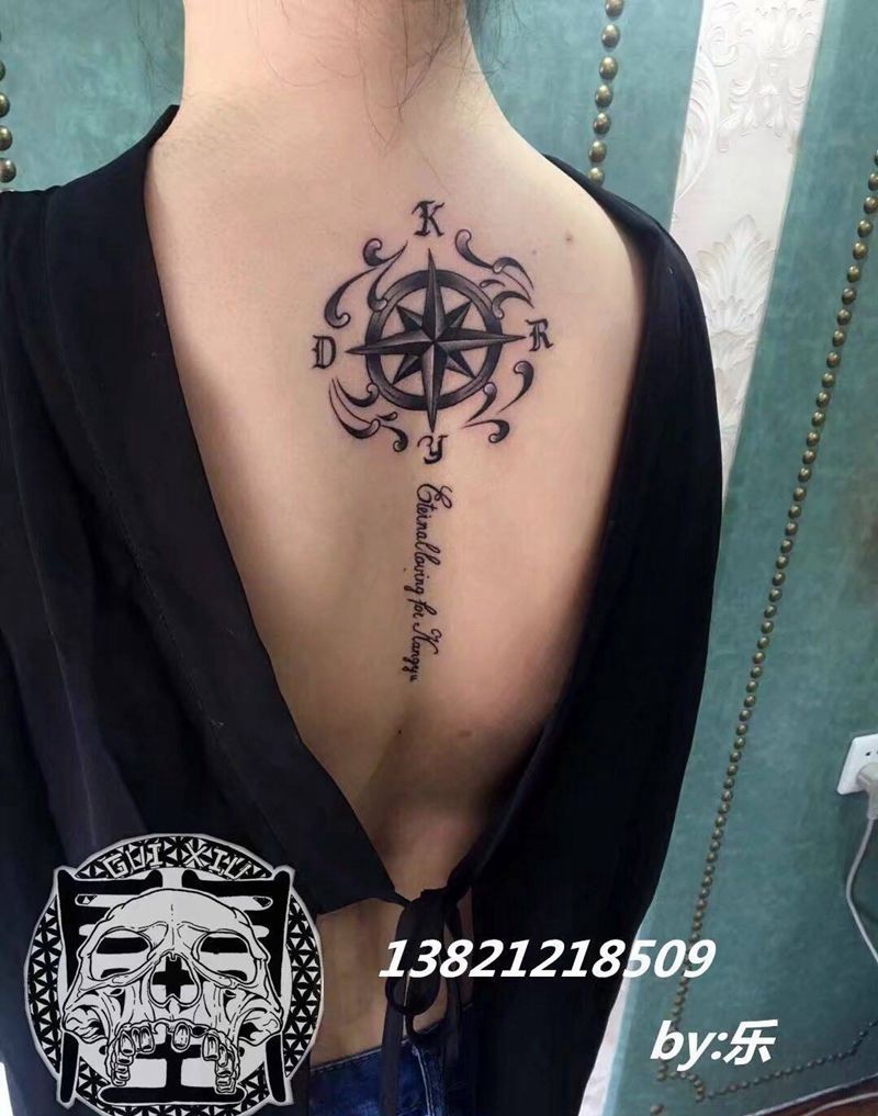 指南针纹身图片_成品颈部肩部背部欧美清新几何字符静物图腾纹身图案