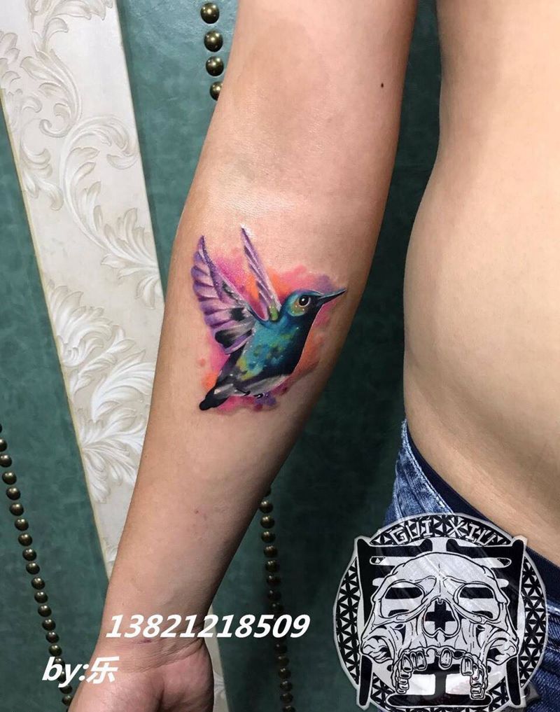 当前位置: 首页 >天津市纹身店-天津闺绣刺青纹身图案>蜂鸟纹身图片_成品手臂肩部欧美清新写实动物纹身图案
