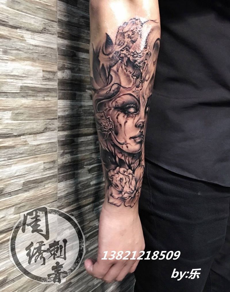 美杜莎纹身图片_成品手臂欧美写实肖像鬼神宗教人物纹身图案