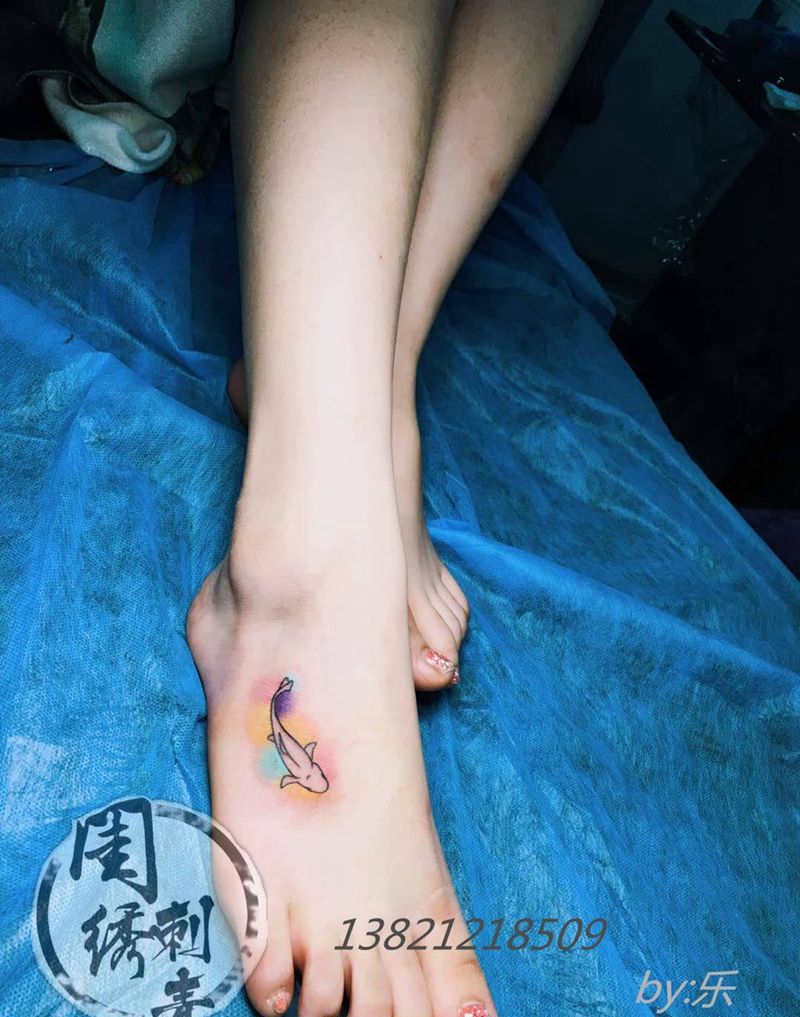 清新小鱼纹身图片_成品脚部清新欧美动物纹身图案